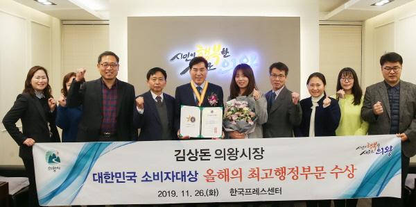 김상돈 의왕시장이 지난 26일 한국프레스센터에서 열린‘2019 대한민국 소비자대상’시상식에서 올해의 최고 행정부문 대상을 수상했다.