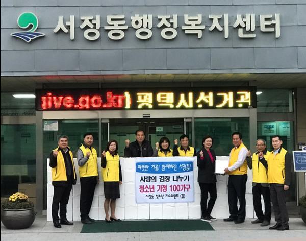 평택시 서정동 청소년지도위원회는 지난 26일 사랑의 김장김치를 서정동행정복지센터에 전달했다.