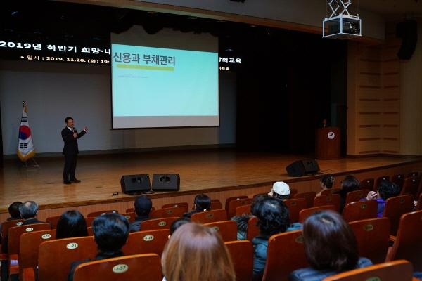 이날 교육은 국민연금관리공단 노후설계전문 조형득 강사가 ‘신용과 부채’를 주제로 쉽고 재미있게 알아가는 신용과 부채에 대해 강의했다.