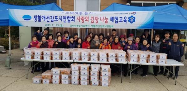 생활개선김포시연합회는 지난 25일 연말을 맞아 소외계층을 위한 ‘아름다운 이웃사랑 김장나눔 행사’를 회원 40여명이 참여한 가운데 관내 노인복지시설 등 20개소에 전달했다.
