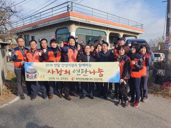 한전산업개발 안성지점 나누리봉사단은 27일 동절기를 맞아 미양면 거주 독거노인 및 노인부부 2가구를 대상으로 사랑의 연탄나눔을 전개했다.