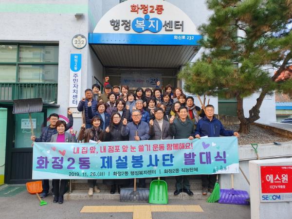 이번 발대식은 겨울철 강설 시 주민 통행 불편을 해소해 안전사고를 예방하고 내 집, 내 점포 앞 눈 치우기 운동 홍보활동을 전개해 지역주민들의 적극적인 제설 참여 유도를 통한 안전한 화정2동 만들기에 최선을 다하자는 취지로 열렸다.