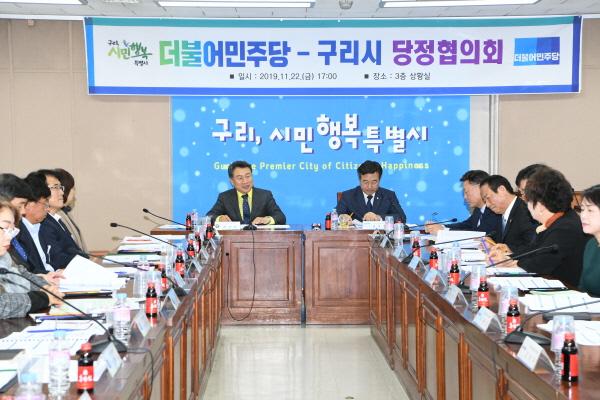 구리시는 지난 22일 오후 5시 시청 상황실에서 국·도비 요청사업 협의, 지역의 주요현안사업 공유와 개선방안 등에 대해 더불어민주당 구리시지역위원회와 당정협의회를 갖고 상호간 협력의지를 확고히 했다.