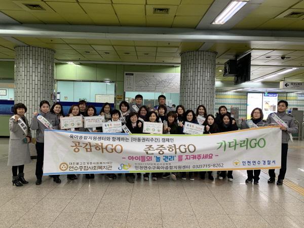 19일 아동학대예방의 날에는 지하철에서 아동권리존중 캠페인을 진행했으며 이번 캠페인에는 어린이집 가정 연계 프로그램에 참여한 연수 Savior 어린이집 14개소와 연수경찰서 연수종합사회복지관이 함께 했다.