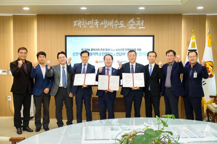순천시는 지난 26일(화) 전남테크노파크(원장 유동국), 한국폴리텍대학 순천캠퍼스(학장 임종대)과 함께 마그네슘 클러스터 조성 및 금속 관련 산업 육성 정책에 따른 중소기업 활성화를 위해 업무협약을 맺고 전문 인력양성에 협력하기로 했다.