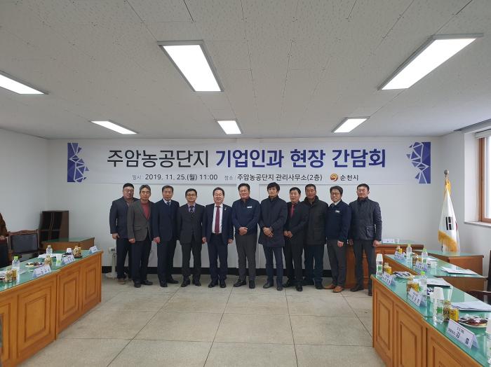 간담회에 앞서 허석 시장은 농공단지 내 성우산업(주), ㈜비손등 기업을 방문해 운영상황과 고충을 청취하며 현장을 둘러봤다. 농공단지 관리사무소에서 진행된 간담회에서는 주암농공단지 협의회와 입주기업들의 애로사항을 듣고 그에 따른 지원 대책 방안 등을 논의하고 참석한 기업인들과 다양한 주제로 소통의 시간을 가졌다.