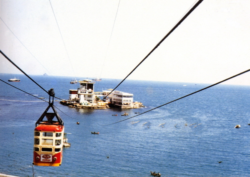 1964년부터 운행됐던 옛 해상케이블카는 해상다이빙대·구름다리·포장유선과 함께 1960~70년대 송도해수욕장을 부산을 대표하는 전국구 관광지로 만들었던 4대 명물로 손꼽혔으나, 해수욕장의 쇠퇴와 시설 노후화 등으로 1988년 운행이 중단됐다.
