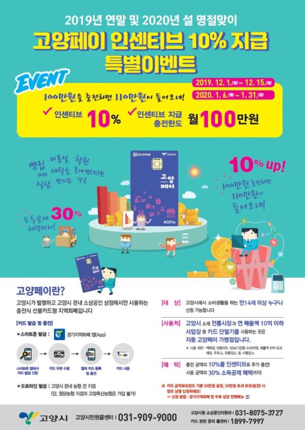 고양시는 연말연시를 맞아 지역화폐 ‘고양페이’의 10% 인센티브 특별이벤트를 실시한다.