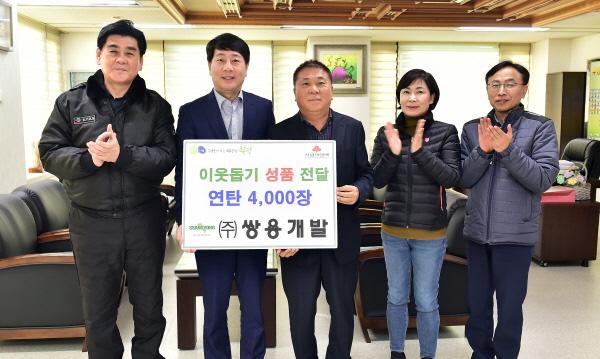 ㈜쌍용개발은 지난 1월에도 연수구와 남동구에 연탄 7천 장을 기탁하는 등 저소득 가정을 위한 꾸준한 연탄 나눔으로 어려운 이웃들의 난방문제를 해결하는데 앞장서고 있다.