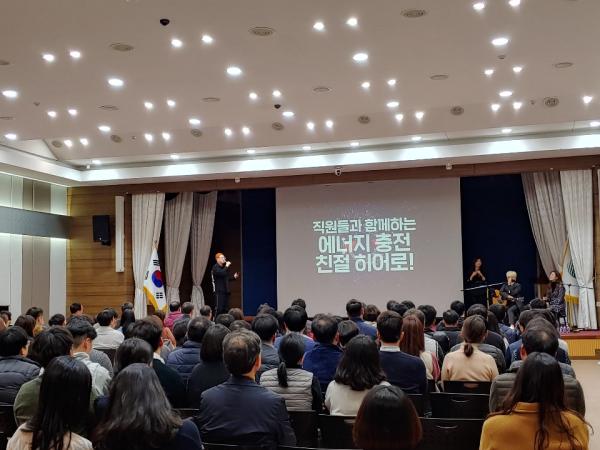 직원들의 민원응대 역량과 행정서비스 품질 향상을 위해 마련된 이번 친절교육은‘랩에서 배우는 친절 인문학’이라는 주제로 래퍼 김동효가 강사로 나섰다.
