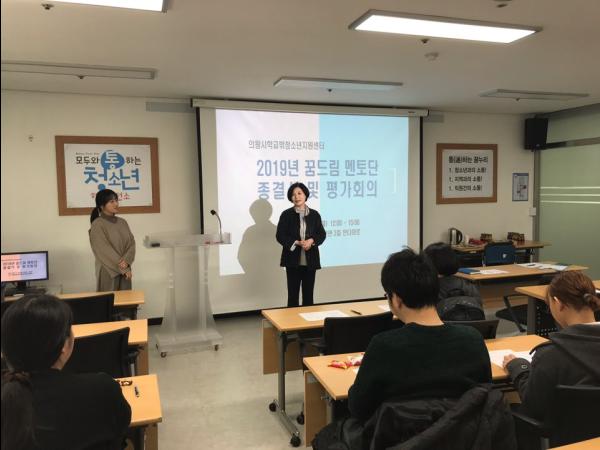 의왕시학교밖청소년지원센터는 지난 25일 의왕시청소년수련관에서 꿈드림 멘토단 및 학교밖청소년 등 15명이 참석한 가운데‘2019년 꿈드림 멘토단 종결식 및 평가회의’를 열었다.