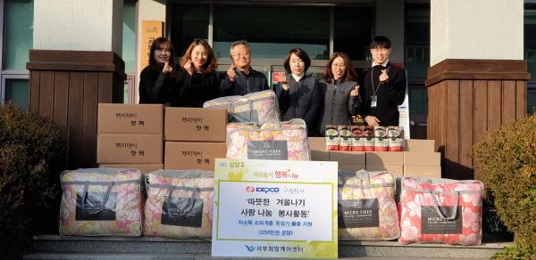 한국전력공사 구리지사가 지난 25일 소외된 이웃들이 따뜻한 겨울을 보낼 수 있도록 남양주시 서부희망케어센터에 이불, 핫팩 등 250만원 상당의 겨울나기 동절기 물품을 전달했다.