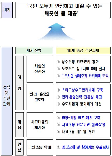수돗물 수질정보를 스마트폰으로 실시간 제공하고 수돗물평가위원회를 지자체 수도정책 전반에 대한 자문기구로 개편한다.