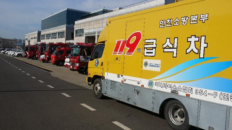 | 인천서부소방서, 다수사상자 구급대응훈련에 급식차 지원 나서는 차량사진. <ⓒ미디어타임즈> |