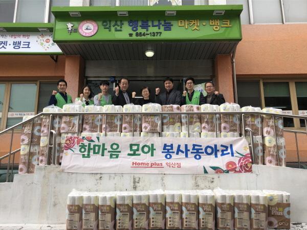 이날 기탁된 화장지는 익산행복나눔마켓·뱅크를 이용하는 위기가구, 차상위계층 등 마켓 이용자에게 지원될 예정이다.