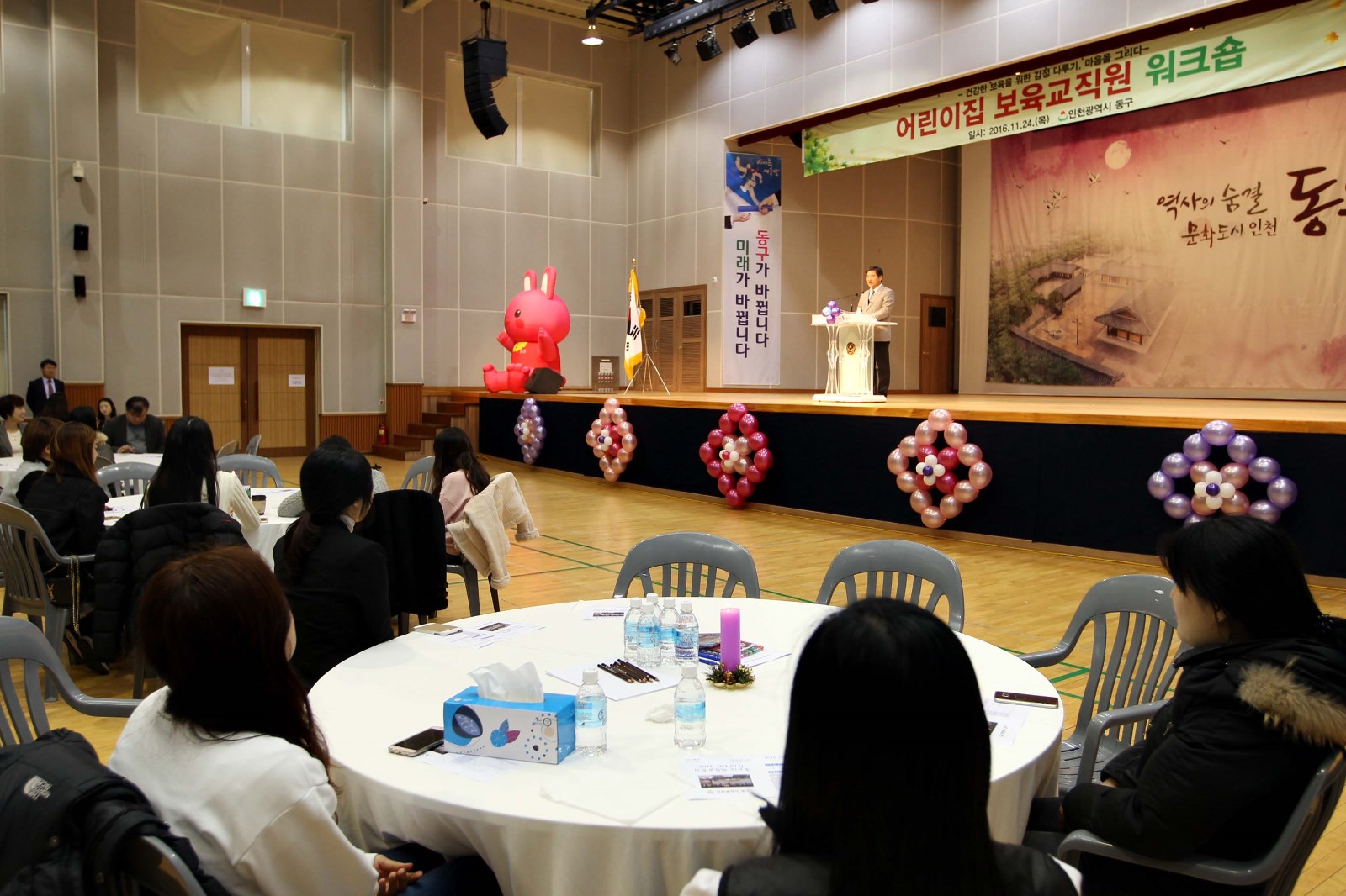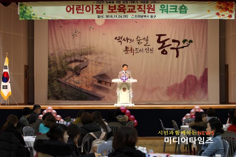 [미디어타임즈=문상수 기자] 인천 동구(구청장 이흥수)는 지난24일, 동구 주민행복센터 대강당에서 관내 67개소 어린이집 보육교직원 100여 명이 참석한 가운데 ‘어린이집 보육교직원 워크숍’을 개최했다. 구에 따르면 이번 워크숍은 미래의 희망인 영유아의 질 높은 보육을 위해 사명감을 갖고 최선을 다하고 있는 보육교직원의 노고를 위로하고 보육교직원 간 소통의 기회를 갖고자 마련됐다. 이날 미술심리치료 전문가 신유현 강사는 ‘그림을 통해 나를 알기’를 주제로 특별강연에 나섰으며 ▲어린이집 보육교직원의 마음 힐링 프로그램 ▲화합의 시간 순서로 강의를 진행했다. 워크숍에 참석한 한 보육교사는 “보육교사의 마음이 건강해야 영유아와의 긍정적인 의사소통으로 이어지는 것 같다”며 “미술심리치료를 통해 나를 알고, 진정한 나의 행복을 찾을 수 있는 힐링의 시간이었다”고 소감을 말했다. 한편 이흥수 동구청장은 “동구의 미래는 자라나는 영유아의 건강한 보육에서 시작된다고 생각한다”며 “이번 워크숍을 계기로 보육교직원의 스트레스를 해소하고 양질의 보육환경을 조성하는 기회의 장이 되기를 바란다”고 말했다.