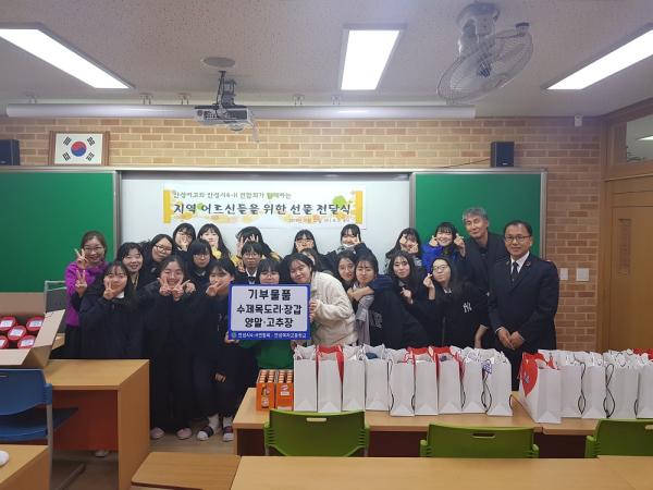 안성여자고등학교 4-H회에서 직접 제작한 목도리, 장갑, 양말 25세트와 유자청, 청년농업인들과 함께 제작한 고추장을 안성시 노인복지관에 기부했다.