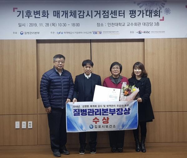 김포시보건소는 ‘2019년 매개체 감시 및 방역관리 유공자 포상’에서 우수기관으로 선정돼 질병관리본부 기관표창을 받았다고 28일 밝혔다.