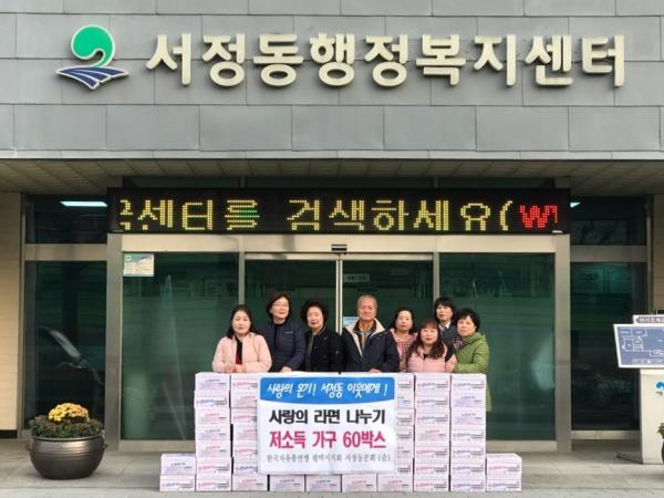 한국자유총연맹 평택지회 서정동분회는 지난 27일 관내 저소득층을 위해 라면 60박스를 서정동행정복지센터에 전달했다.
