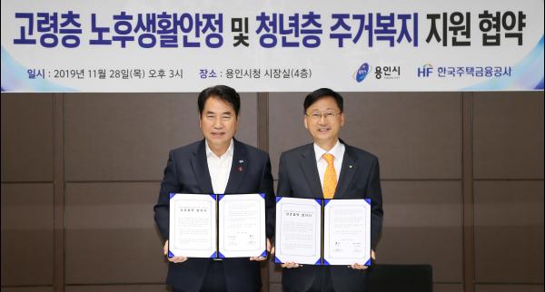 이날 협약엔 백군기 용인시장과 이정환 한국주택금융공사 사장을 비롯해 두 기관 관계자들이 함께 했다.