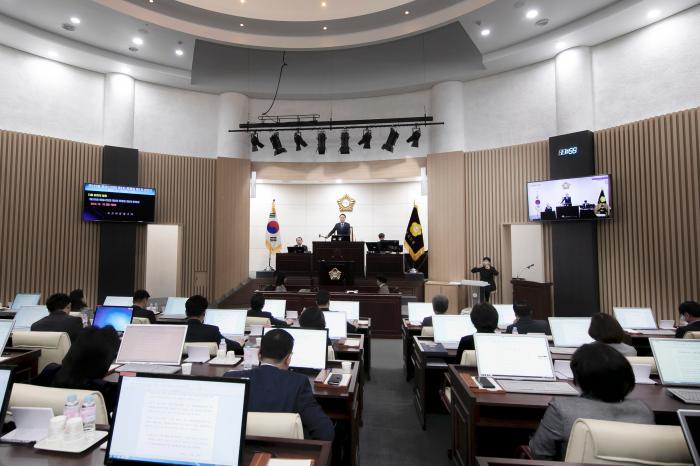 김홍성 의장은 개회사에서 “내년도 예산규모는 반도체 기업의 실적악화에 따른 세수 감소로 올해보다 586억 원이 감소했다”며 “사업의 우선순위와 예산의 경제적 효과를 최대한 반영한 적정한 재원의 배분이 되었는지 꼼꼼히 살펴달라”고 당부했다.