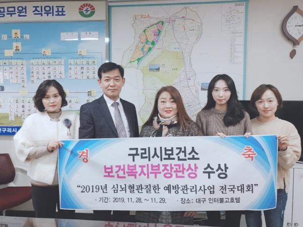 그동안 구리시보건소에서는 심뇌혈관질환 예방관리를 위해 심뇌혈관질환 예방 교육, 고혈압·당뇨병 환자 조기 발견을 위한 홍보·캠페인 실시, 고혈압·당뇨병 건강교실 및 자조 모임 운영 등 지역 주민의 심뇌혈관질환 예방에 기여한 점을 인정받아 우수기관으로 선정됐다.