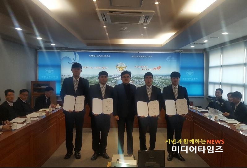 [미디어타임즈=문상수 기자] 인천서부소방서(서장 김준태)는 28일 오전 9시 30분부터 3층 소회의실에서 신규 소방공무원 임용식을 마치고 앞으로의 공직생활에 대한 면담을 실시했다. 이번에 배치된 신규 소방공무원은 인천소방학교에서 15주간의 교육 · 훈련을 받은 상태이며 사고 현장의 최전선인 각 119안전센터로 발령받아 빠른 실무 적응 및 현장 활동 대응능력 배양을 위해 자체 직무교육을 받을 예정이다. 김준태 서장은 신임 임용자들에게 “서구주민의 소중한 생명과 재산을 책임지게 된다는 사명감을 가지길 바라며, 현장 활동 시 안전을 최우선해 다치지 않도록 조심하길 바란다”고 말했다.