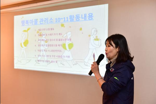 지킴이 활동 실적보고는 행복마을관리소 사무원이 직접 보고 자료를 만들고 발표해 신선하고 역량있는 모습을 보여줬다.