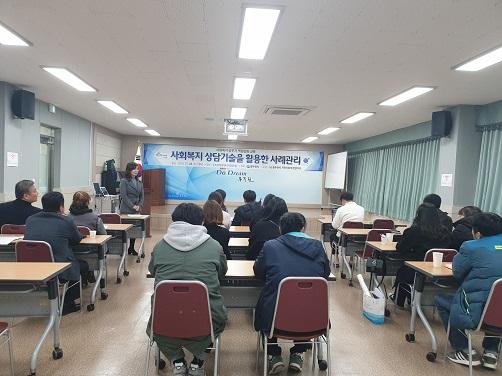 이번 교육은 사회복지 영역에서 중요한 역할을 하는 상담기술에 대한 이해를 통해 전문적인 능력을 향상시키고 다양하게 급증하는 복지수요에 효율적으로 대처하며 복지서비스를 전담하는 실무자 간에 민·관 협력체계를 구축하고자 마련됐다.