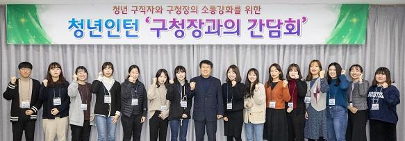 인천 계양구는 지난 28일 청년인턴사업 참여자들과 ‘구청장과의 간담회’를 가졌다. 박형우 구청장은 청년인턴들과의 간담회를 통해 근무여건과 담당업무 등을 확인하고 인턴활동에 대한 의견을 청취하는 한편 취업을 향해 노력하고 있는 청년들의 노고를 격려했다.