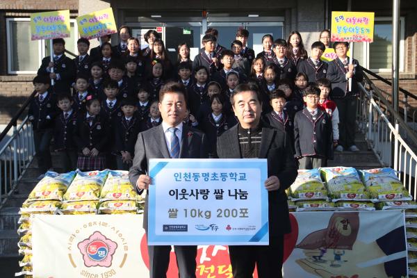 인천 동구는 29일 인천동명초등학교 본관 앞에서 ‘동명 이웃사랑 불우이웃돕기 쌀 전달’ 행사를 가졌다.
