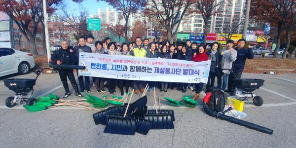 지난 26일 발대식을 개최한 탄현동 제설봉사단은 인도 및 이면도로 관리 등 철저한 겨울철 재난 사전 대비로 재해를 최소화하고 신속한 제설작업으로 원활한 교통 소통 및 안전한 도로환경 조성을 위해 노력하기로 했다. 또한, 이날 발대식에서는 ‘고양시민의 눈 치우기는 이웃 사랑의 작은 실천이다’라는 슬로건을 바탕으로 폭설 시 눈 치우기 봉사 실천을 다짐하기도 했다.