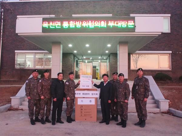 옥천면 방위협의회에서는 지난 28일 61여단을 방문해 조국의 안보를 책임지는 장병들의 협조에 감사를 표하고 방위협의회의 정성과 감사의 마음을 담아 위문품으로 빨래 건조기를 전달했다.