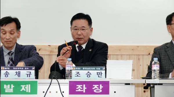 연구모임 대표인 조승만 의원이 좌장을, 청운대 창업경영학과 송채규 교수가 발제를 맡았고 충남도 최문희 균형발전담당관과 우종석 신도시정책팀장, 김상홍 홍북읍 주민자치회장, 행정복지연구소 송병만 운영위원장이 토론자로 참여했다.