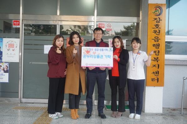 지난 28일 장호원읍행정복지센터에서는 뜻깊은 기탁식이 열렸다. 엘리야병원 간호사 4명이 ‘제23회 햇사레장호원복숭아축제’ 기념으로 2019. 9. 6. 개최된 ‘KBS전국노래자랑’에 참가, 부상으로 받은 상품권 70만원을 불우이웃을 위해 써달라며 기탁해왔다.