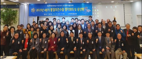 민주평화통일자문회의 의정부시협의회는 지난 27일 노바웨딩홀 4층에서 자문위원 66명이 참석 한 가운데 4분기 통일의견수렴 정기회의 및 송년회를 개최했다.