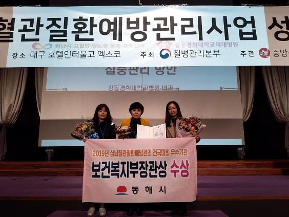 동해시는 지난 11월 28일부터 11월 29일까지 이틀간 열린‘2019 심뇌혈관질환 예방관리사업 전국대회’에서 우수 기관으로 선정되어 보건복지부 장관상을 수상했다고 전했다.