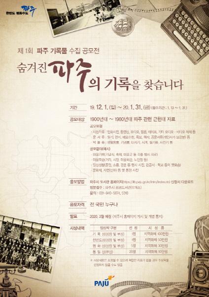 파주중앙도서관은 숨겨진 파주의 기록물들을 발굴해 지속해서 보존·활용하기 위해 파주 기록물 수집 공모전을 개최한다.