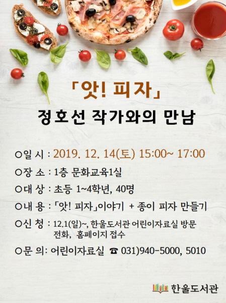파주시 한울도서관은 오는 14일 오후 3시 초등학교 1~4학년을 대상으로 ‘앗 피자’ 정호선 작가와의 만남을 진행한다.