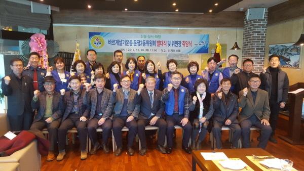 김태유 바르게살기운동파주시협의회장과 시협의회 임원들, 운정2동 사회단체장, 운정2동 사회단체회원 등 30여명이 참석한 가운데 발대식을 개최했다.