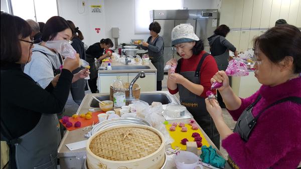 교육은 5회에 걸쳐 진행됐으며 쌀가루와 팥 앙금을 이용해 가정에서 쌀떡 케이크를 만드는 방법을 제공했다.