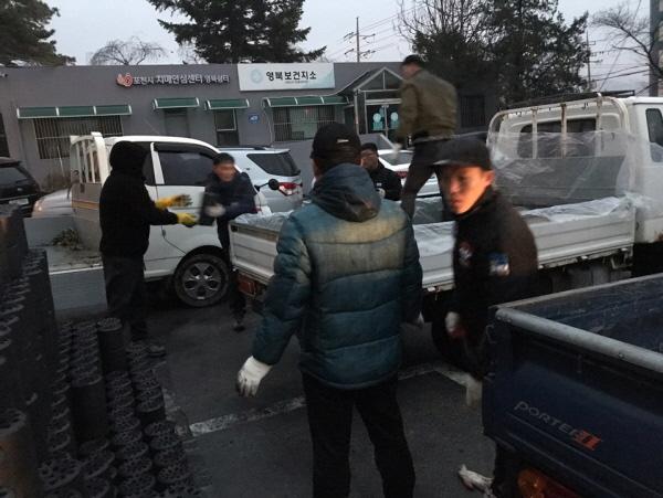 영북면청년기수연합회는 지역단체들과 협력해 연탄 7,000장을 한파취약계층 23가구에 300장씩 전달했다. 영북면적십자봉사회는 봉사자들을 위해 간단한 아침식사를 제공했다.