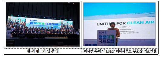 또 같은 달 19~20일 UN관계자 및 동아시아 국가공무원 등 100여명을 초청, 수원컨벤션센터에서 ‘청정대기 국제포럼’을 개최, 호흡공동체 인식과 국제 네트워킹 중요성을 강조하고 대기오염 배출국의 적극적 배려자세 전환과 해결 성공담을 함께 공유했다.
