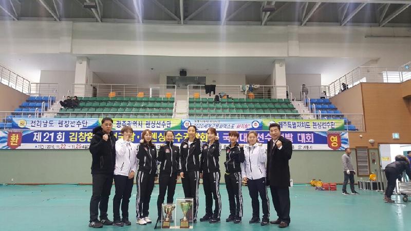 [미디어타임즈=문상수 기자] 중구 직장운동경기 펜싱부는 11월 22일부터 25일까지 충청남도 계룡시 계룡시민체육관에서 열린 제21회 김창환배전국남녀펜싱선수권대회 겸 국가대표선수선발대회에서 플러레 단체전 1위, 사브르 단체전 3위 및 개인전 3위의 우수한 성적을 기록했다. 김미나 선수를 주축으로 이한나, 오혜미, 장예슬로 구성된 플러레팀이 단체전에서 1위, 이라진 선수를 주축으로 조윤영, 조주연으로 구성된 사브르팀이 단체전에서 3위, 이라진 선수가 개인전에서 3위를 획득하며 올해 마지막 대회에서도 펜싱 강팀다운 면모를 보여주었다. 또한 이번 대회는 국가대표 선수 선발을 위해 점수를 부여하는 대회로 그동안의 점수를 합산한 결과 이라진, 김미나, 오혜미 선수가 종목별로 각각 랭킹 2위, 3위, 6위를 기록하며 우리 구에서는 3명이 국가대표로 선발되는 쾌거를 거두었다. 이에, 중구청 펜싱부 장기철 감독은 “중구의 아낌없는 지원과 함께 선수들의 피땀 흘린 노력으로 올해에도 매번 좋은 성적을 거둘 수 있었다”는 감사의 마음과 함께 내년에는 올해보다 더 나은 기록 달성을 약속했다.