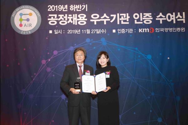한국경영인증원에서 주관하는 ‘공정채용 우수기관 인증’은 채용에 편견적 요소를 배제하고 직무능력중심의 공정채용을 모범적으로 운영하는 공공기관 및 기업에 대상으로 심사를 통해 인증을 부여하는 제도다.