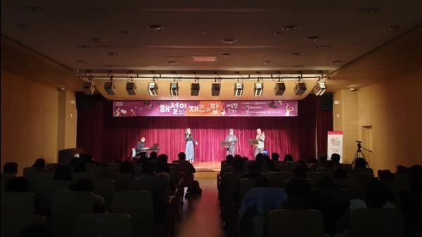 광명시 소하도서관은 지난 1일 소하도서관 강당에서 재즈밴드 ‘이상진트리오’의 ‘해설이 있는 재즈와 팝’ 공연을 성황리에 개최했다.