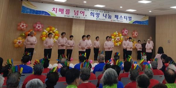 이날 발표회를 통해 치매질환에 대한 사회적 인식 제고와 치매 어르신의 자존감 및 성취감을 고취하고자 그동안 갈고 닦은 치매예방체조, 라인댄스, 공체조 등을 선보였다.