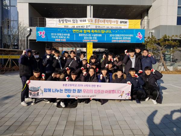 이번 봉사를 추진한 2학년 학생자치회 봉사부 부장 성준모 학생은 “혼자 계신 할머니, 할아버지들께서 저희가 직접 배달한 연탄으로 따뜻한 겨울을 보내실 수 있게 되어 너무나 기쁘고 보람을 느낀다. 내년에 들어오는 후배들도 나눔 실천을 이어갈 수 있게 최선을 다하겠다”고 소감을 전했다.