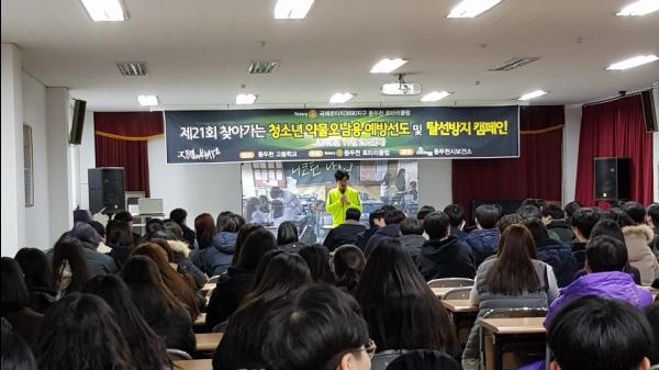 지난 28일에는 마지막으로 동두천고등학교 3학년 학생들이 참여한 가운데, 개그맨 김귀철 씨 외 1명이 재능기부로 진행을 맡아, 학생들의 눈높이에 맞추어 개그쇼와 퀴즈를 풀면서 담배와 약물 오·남용의 해로운 점을 자연스럽게 알리는 새로운 접근방식의 교육프로그램을 실시했다.