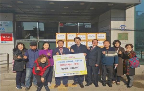 지난 11월 29일 퇴계원성결교회는 퇴계원읍 지역사회보장협의체에 라면 100박스를 후원했으며 17리 김평중 이장은 농장에서 직접 생산한 계란 100판을 후원했다.